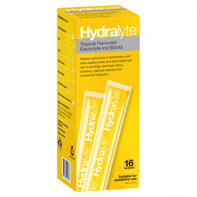 Tags: Hydralyte Electrolyte Ice Blocks Tropical 16 X 62.5ml Pack, 9317039001733, Electrolytes